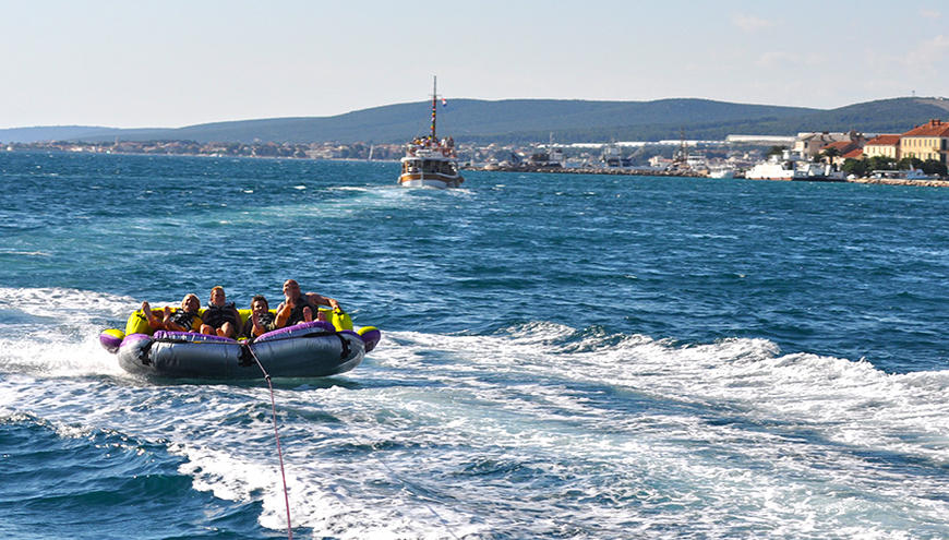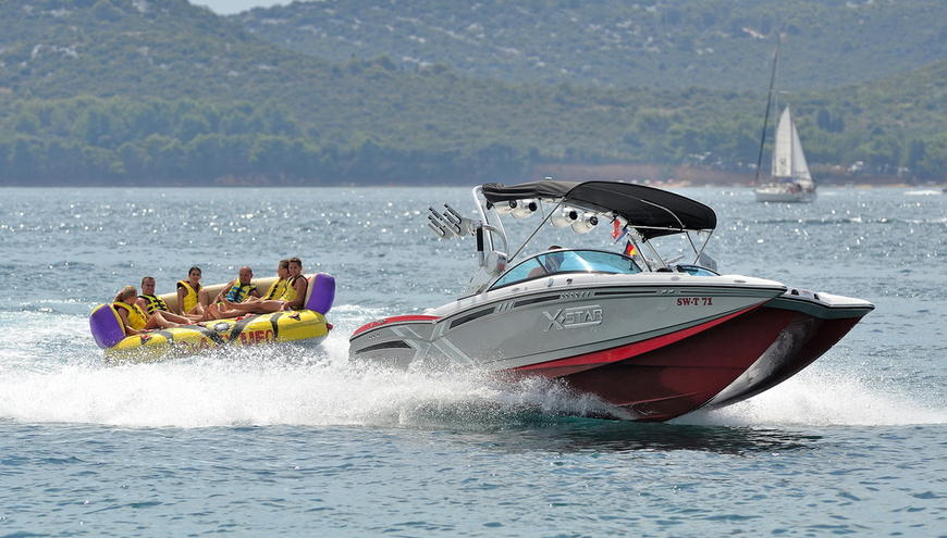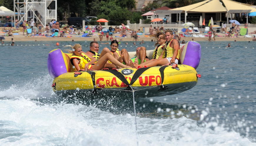 Vožnja sonarom je slična vožnji u tubama. Ovdje sjedite kao na kauču i gliser Vas vuče. Sonar prima 4 osobe.