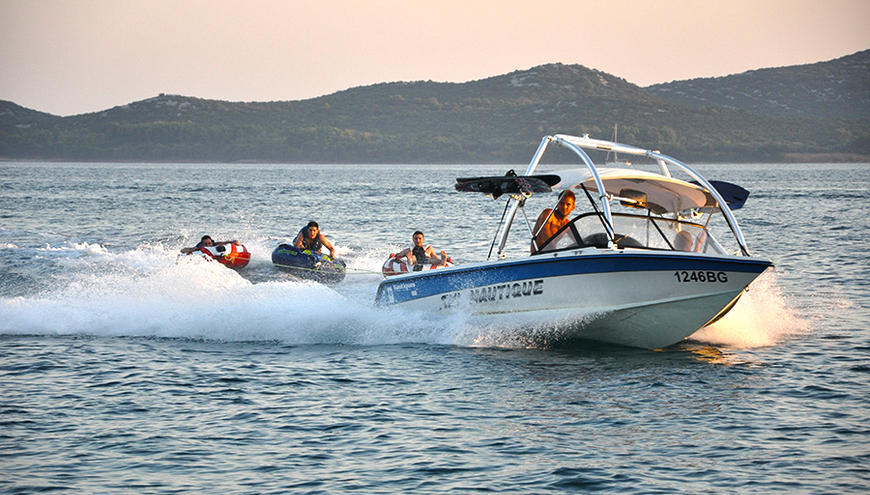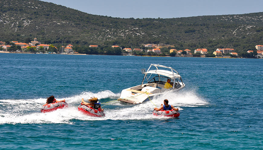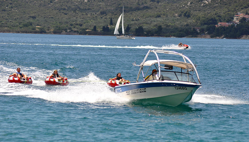 Vožnja tubama je adrenalinska zabava za društvo. U tubu stane jedna osoba, a brod može vući 3 do 6 tuba odjednom.